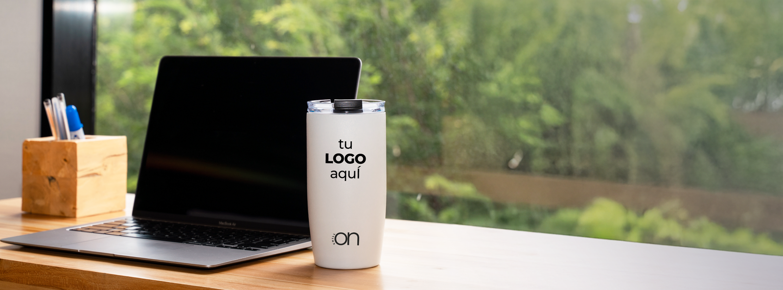 El grabado de tu logo en nuestros vasos y termos transforma un artículo promocional en un vehículo de comunicación constante.